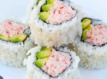 IN: SALMON, TUNA, ALBACORE, YELLOWTAIL, AVOCADO, CRABMEAT
