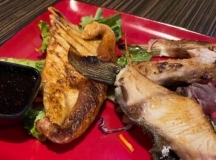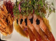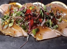 Sliced yellowtail, Jalapeno, Mixed vegetables, Yuzu ponzu sauce